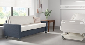 Available in three distinct styles, the Sleepover lounge seating pays meticulous attention to detail and quality construction. The Sleepover easily glides from being fully upright into a completely flat full length sleep surface. Designed for interiors where space is limited, the Sleepover requires zero wall clearance. Standard features include Velcro attached upholstery and a full antimicrobial moisture barrier protecting all cushioning. Proudly made in the USA with a lifetime warranty. Certified: BIFMA Level Sustainability Standard.