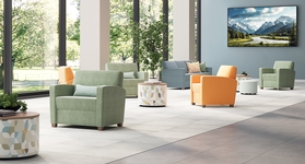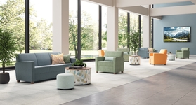 Facelift Replay Lounge Seating offers chairs, two and three place sofas, recliners and gliders. All feature Velcro attached upholstery and antimicrobial moisture barrier. Available options include wood capped arms, tablet arms, aluminum legs and casters. 100% renewable components, a lifetime warranty and proudly made in the USA.