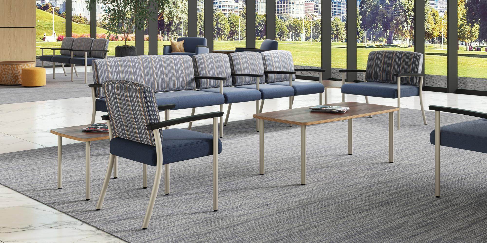 Comfortably proportioned and tailored for the demands of modern public spaces, Austen is crafted using the strength of engineered metal frames and resilient surfaces for optimal cleanliness and durability. The Austen family includes standard and bariatric guest chairs (Wallsaver Models), tandem seating, patient chair, and companion tables. A wide selection of arm and finish options are available. Austen can also be optioned to include Velcro attached upholstery and antimicrobial moisture barrier protection. All models utilize modular construction joinery to enable future on-site maintenance and a life cycle refresh when needed. Backed by a 10-year warranty, Austen is proudly designed, engineered and manufactured in Trinity, North Carolina.