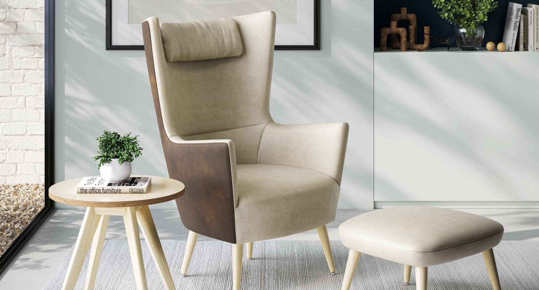 The newest addition to our lounge seating features a new silhouette with softly padded arms that flow into sculptural wings that are shaped to offer a sanctuary of privacy. Crest is crafted with elegant stitching details and seating comfort is enhanced with the addition of an attached headrest pillow. Additionally, base selections include tapered wooden legs, metal tubular legs, and a flat polished aluminum base for the Crest lounge pieces, as well as for the matching ottomans.