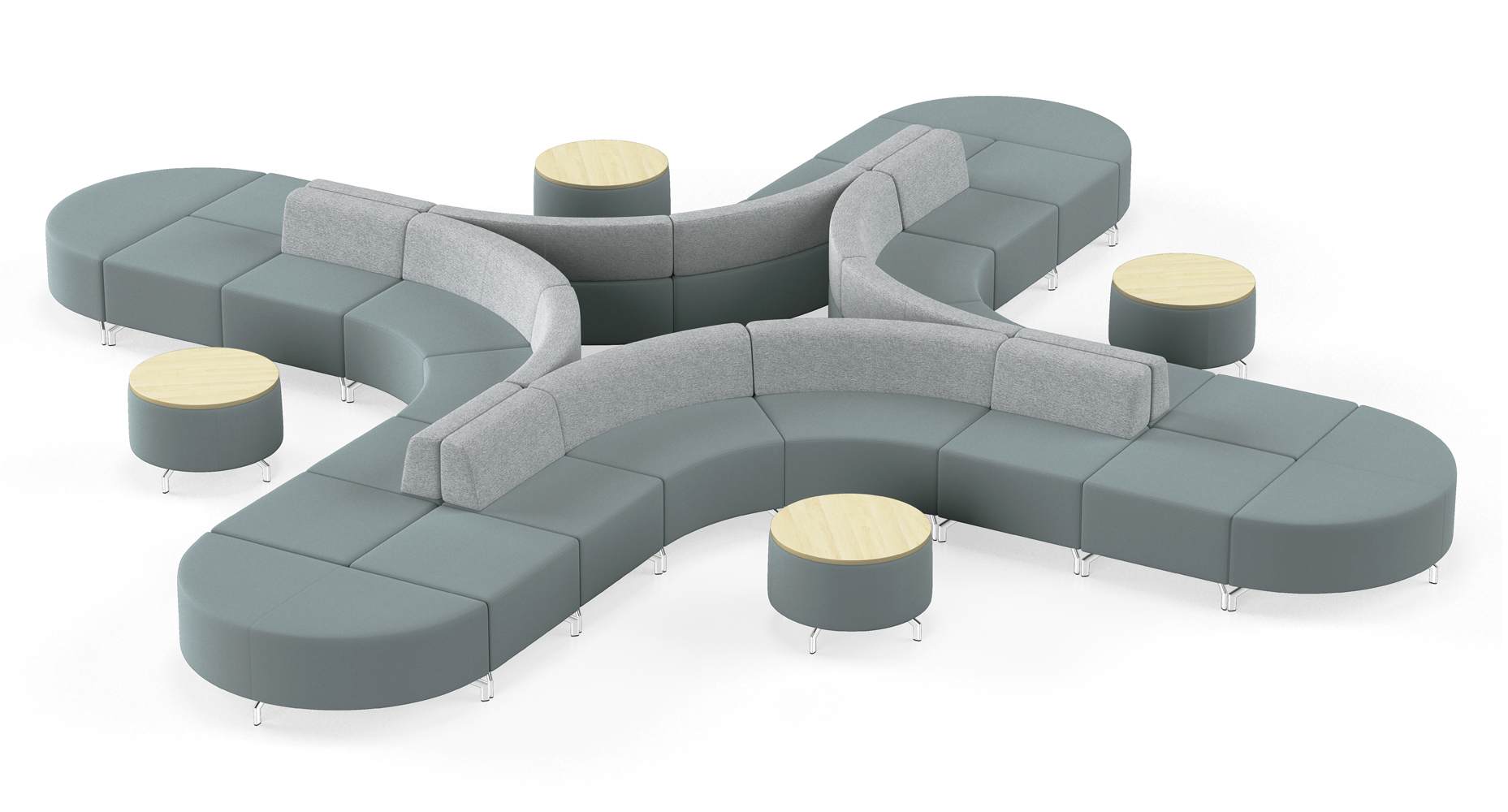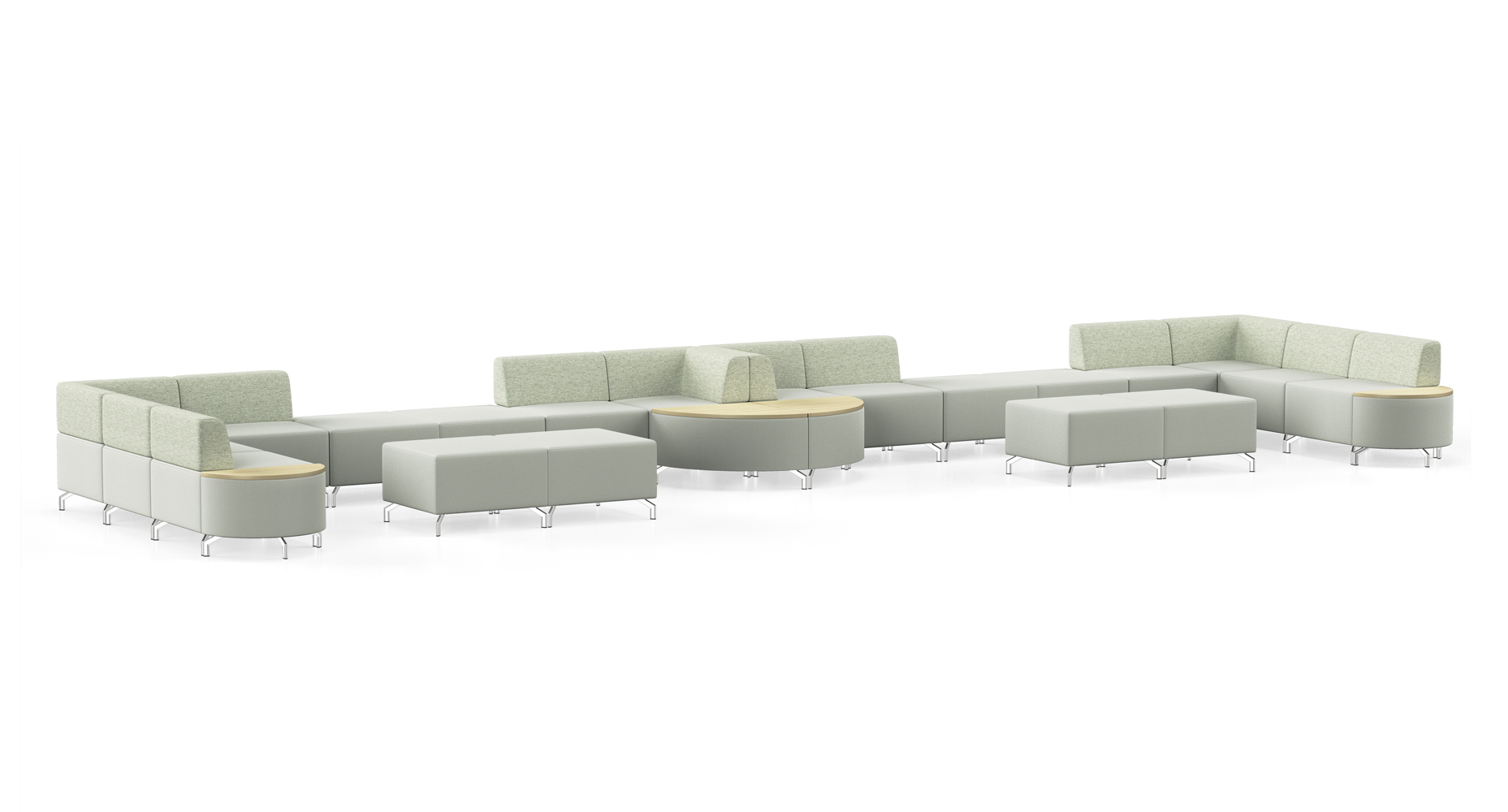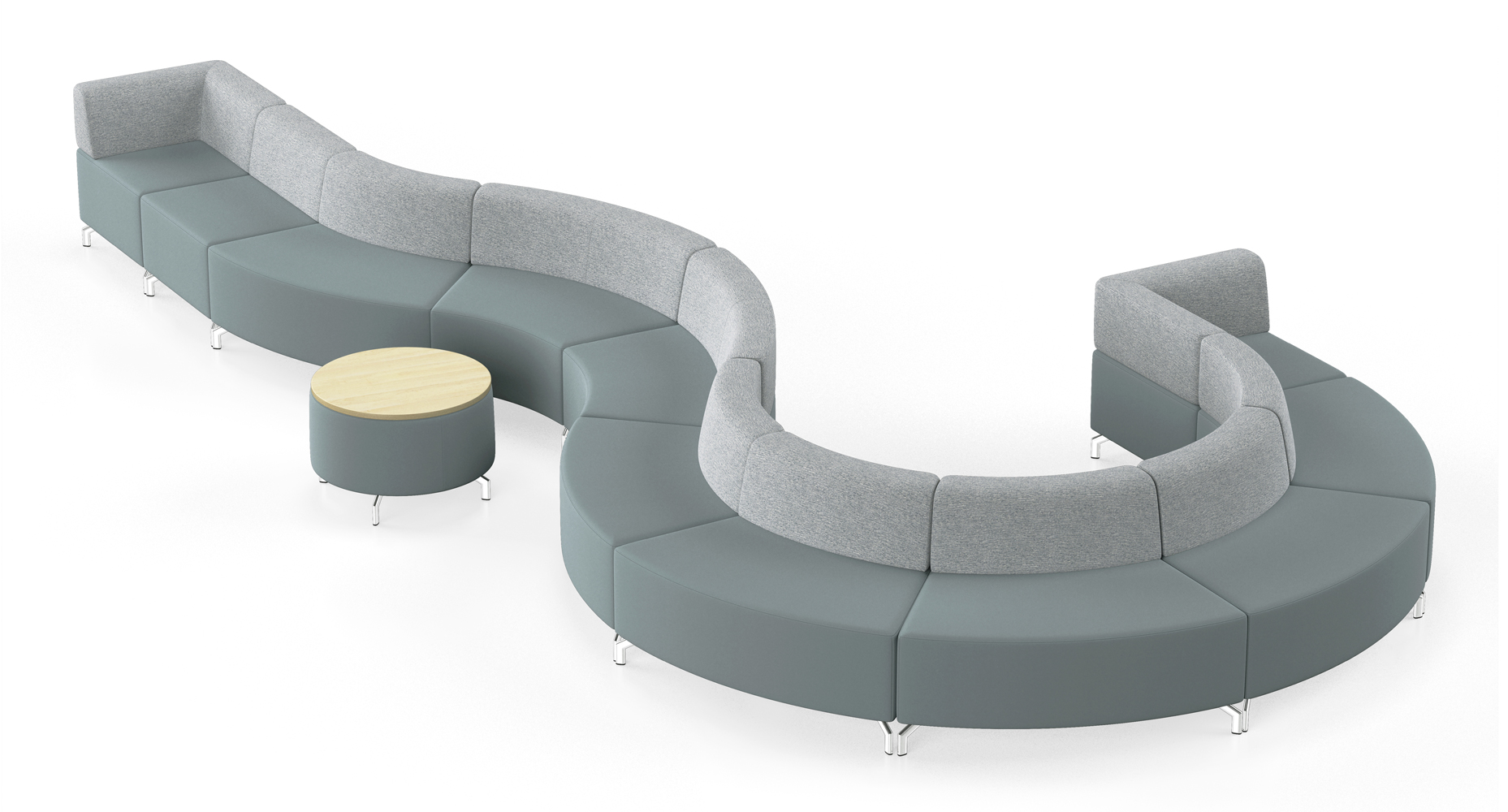 The Hi + Lo Lounge Collection has been thoughtfully designed to offer a modular seating system with optional back heights to define spaces and control the visual landscape of public spaces. Seating models include straight and curved backless benches in single, two and three place units that can accept multiple back heights where necessary for unlimited seating flexibility. With a variety of table, power, and material options, Hi + Lo can transform your unique design vision. Backed by a 10-year warranty, Hi + Lo is proudly designed, engineered and manufactured in Trinity, North Carolina.